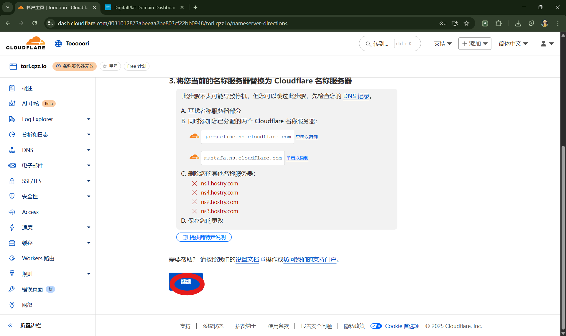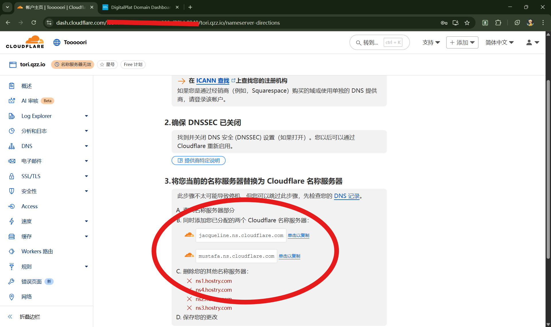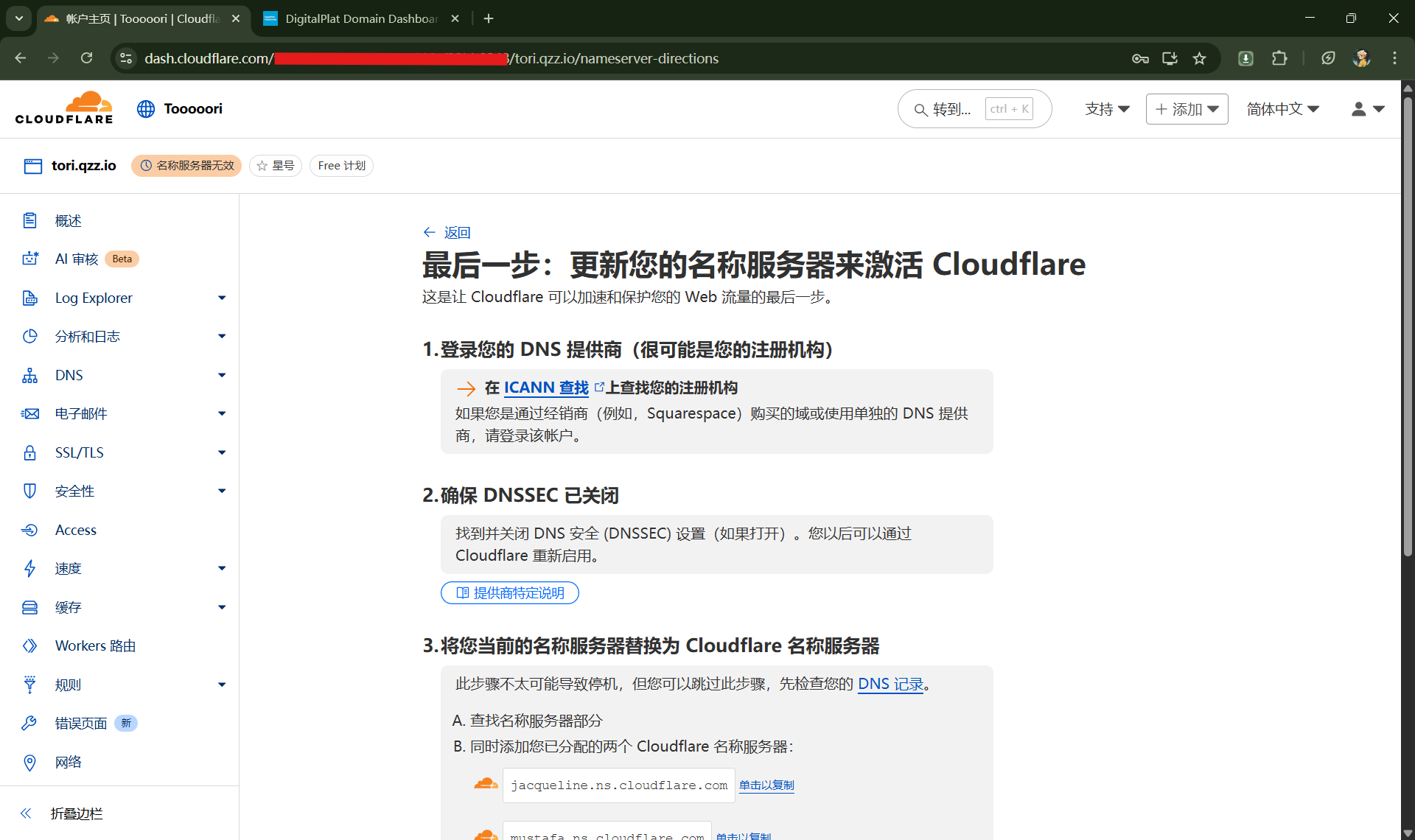 2.2.2 接着不要关闭页面,切回Cloudflare。us.kg用户请先回到2.1: