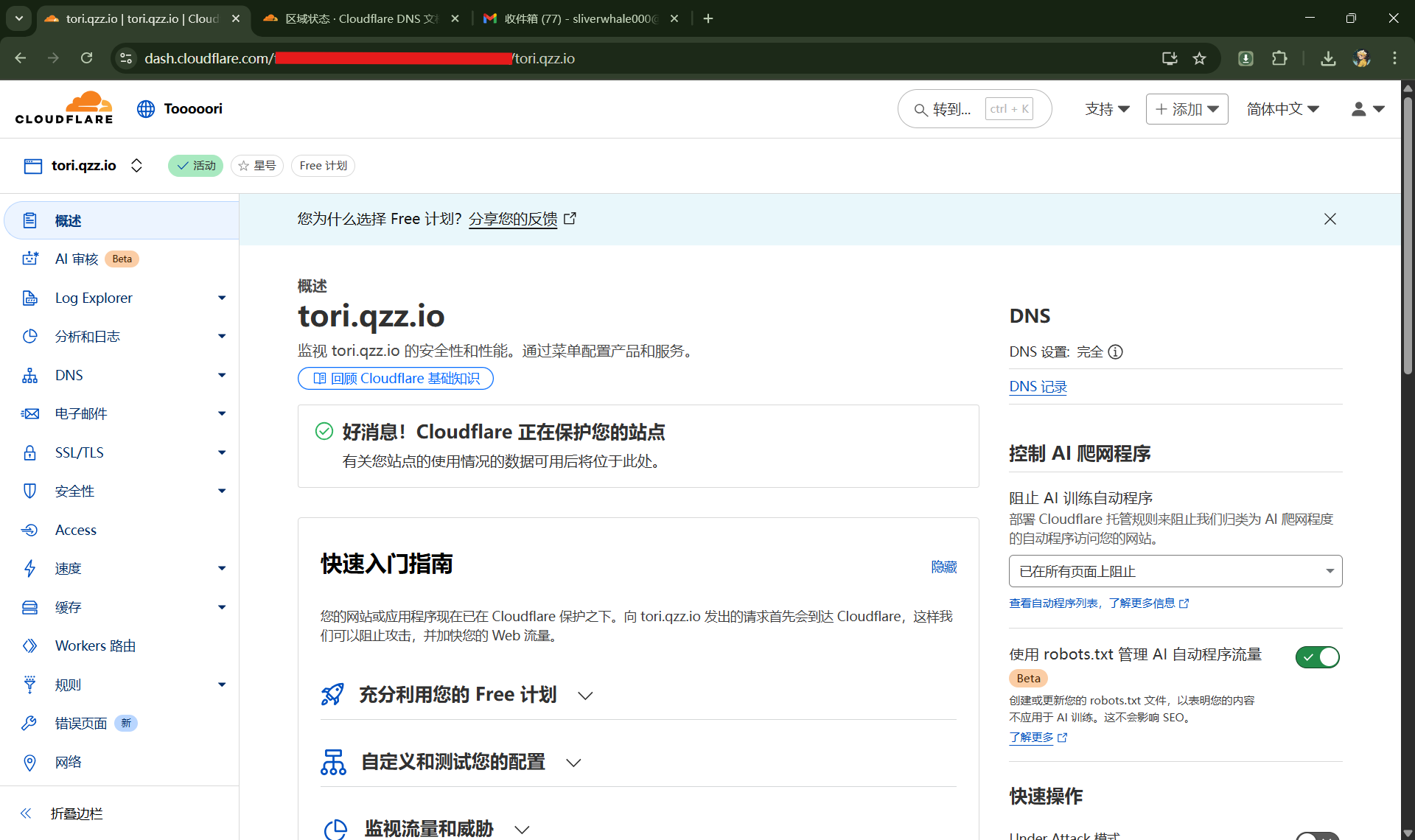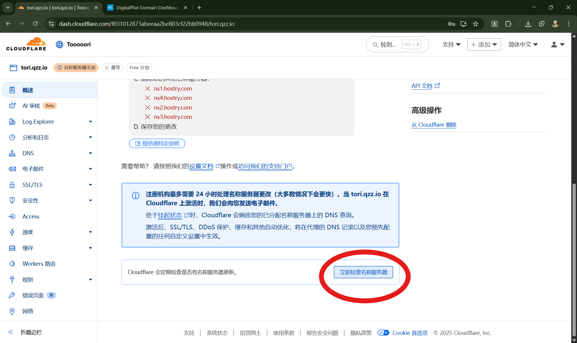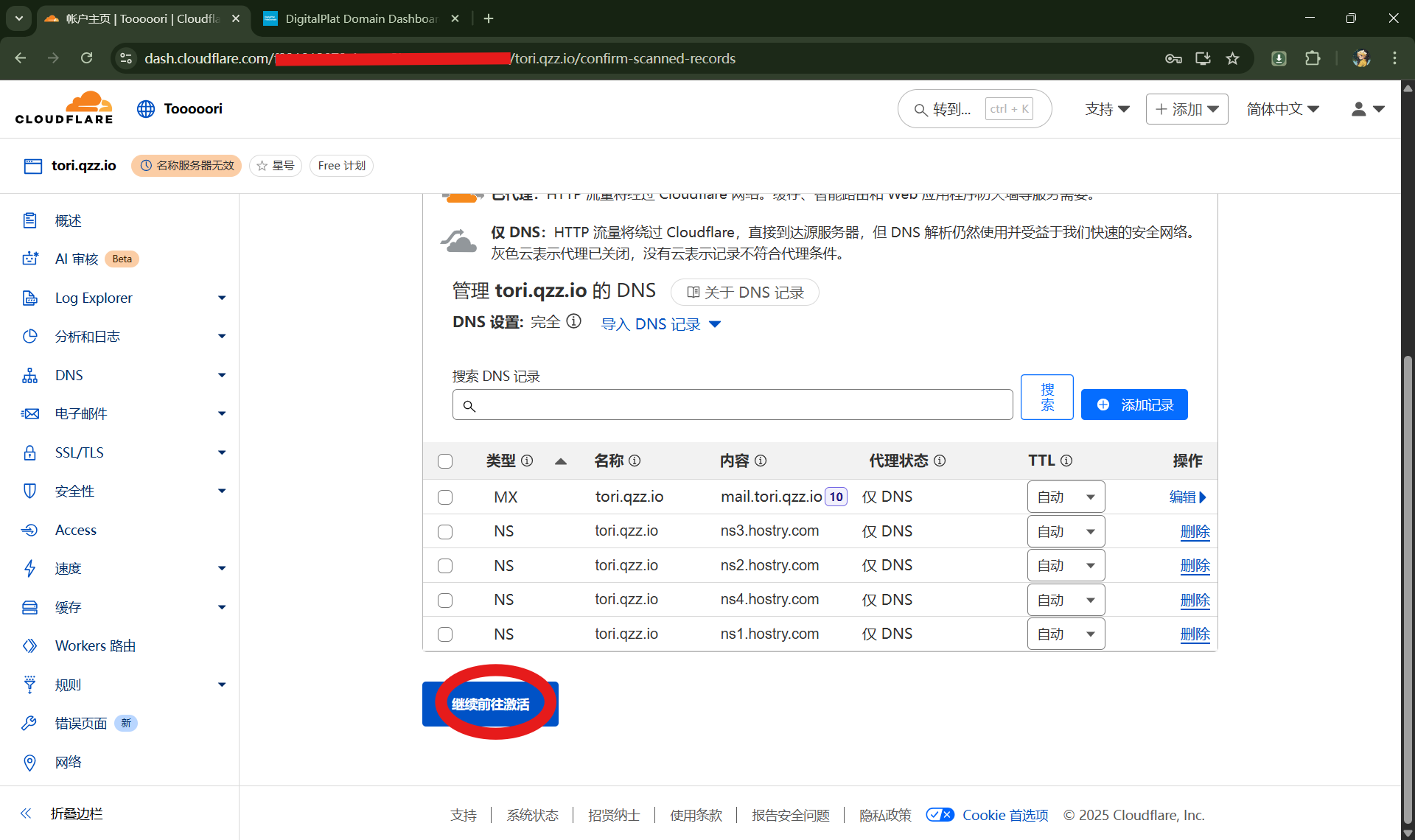 2.2.2 接着不要关闭页面,切回Cloudflare。us.kg用户请先回到2.1: