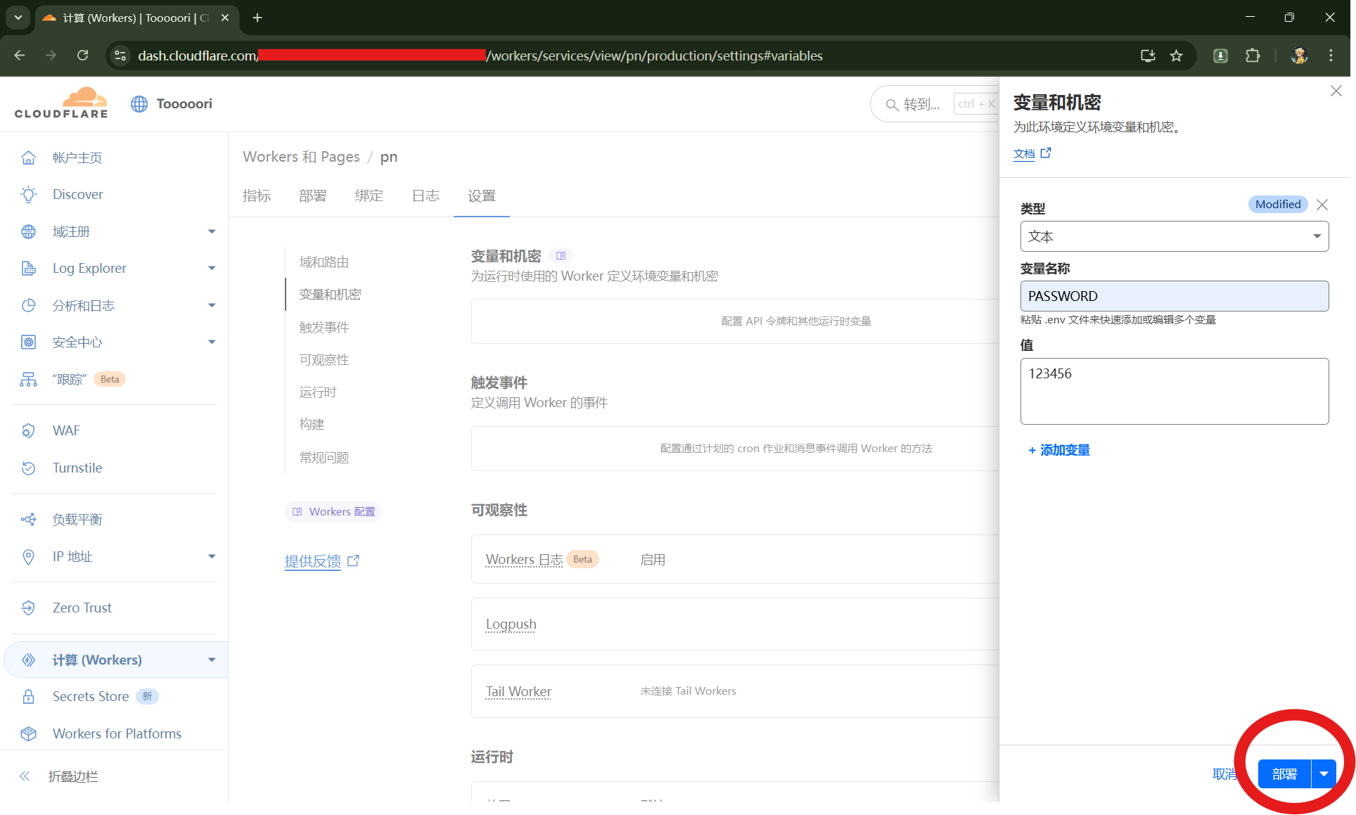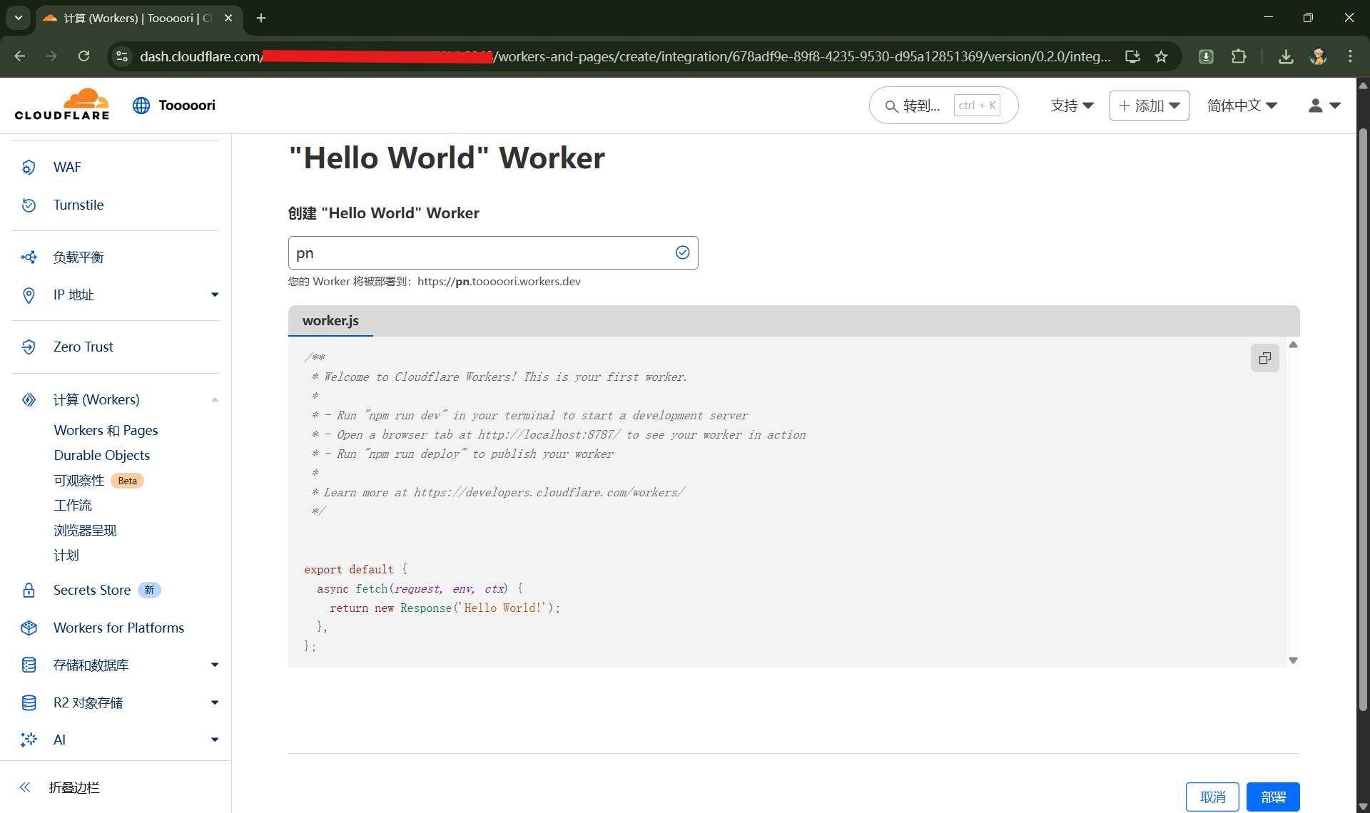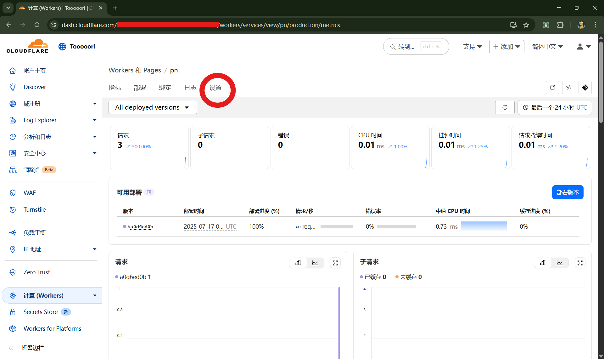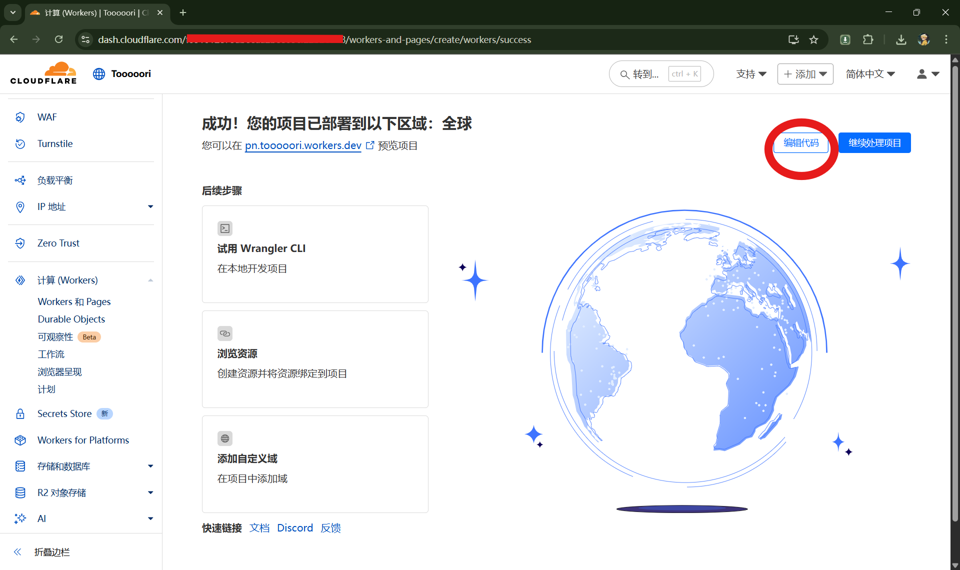 Workers显示部署成功后点击左边的计算(Workers)来到这,然后点击你刚刚创建的Workers项目: