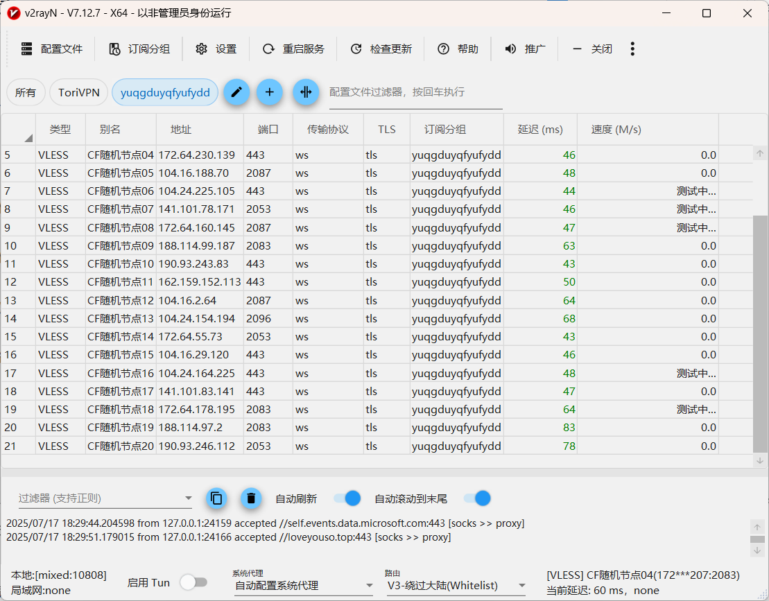 由于本质上为白嫖Cloudflare的公开CDN服务器作为梯子节点使用,其安全性、稳定性和速度肯定是无法比肩付费机场的,仅限个人外部世界使用!且非海外用户最好别用!仅供学习交流使用!请勿用于非法用途!