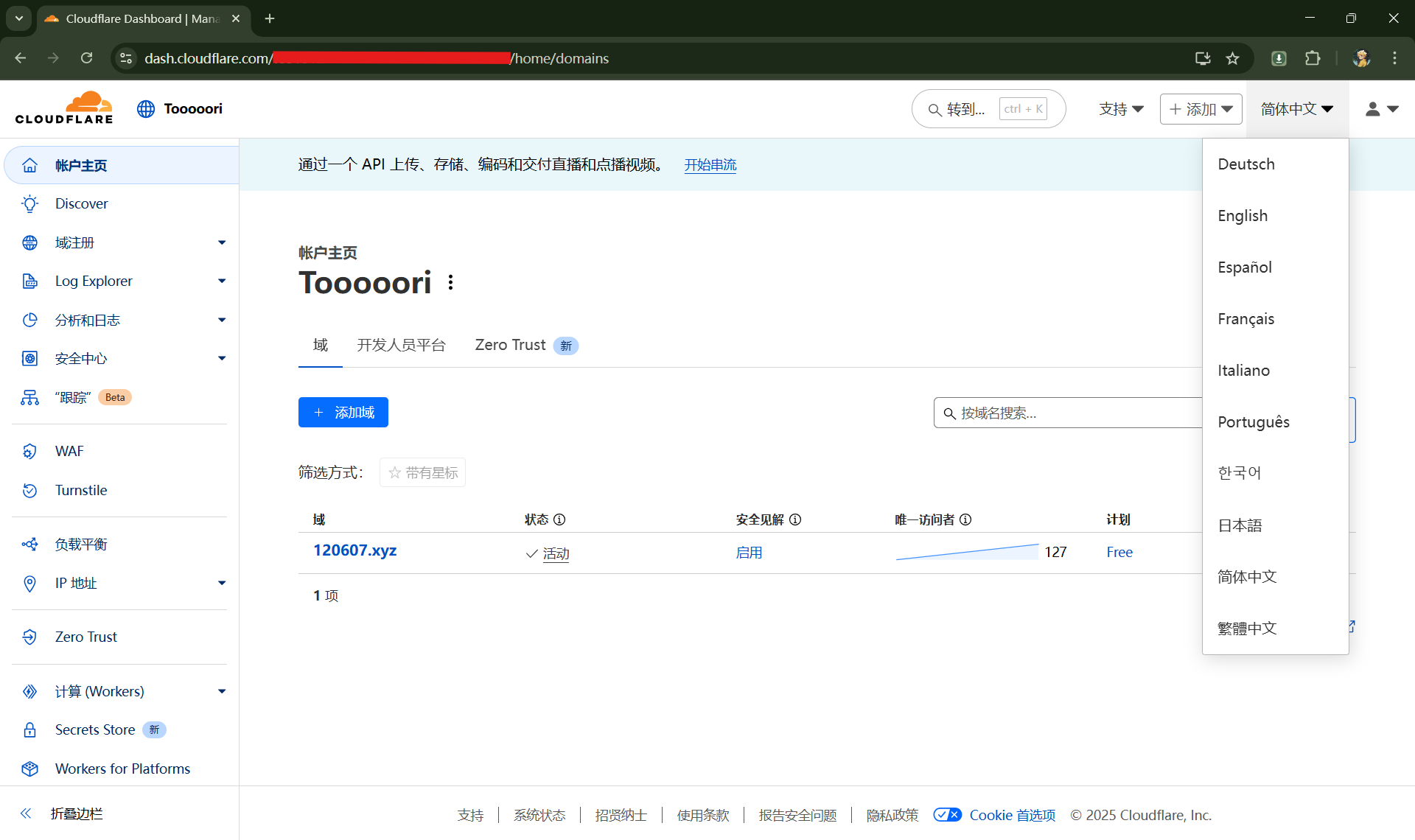 2.1 首先打开Cloudflare,登录你的账号,进入控制台(如果是us.kg的用户请先止步,跳转到2.2):